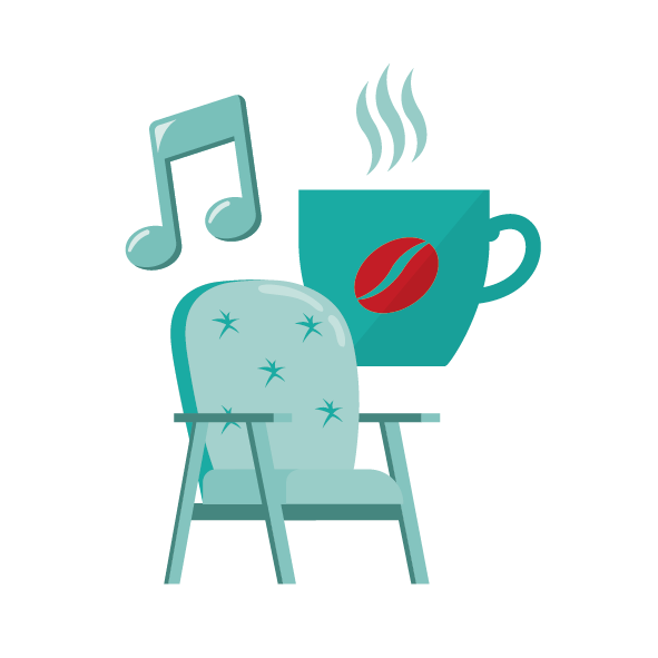 In de foyer bij de entree vindt u een gezellig koffiehoekje waar u met gasten kunt zitten of andere bewoners kunt ontmoeten. Of u haalt iets te lezen uit de bibliotheek die u achter in dezelfde foyer vindt.